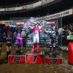 C’est finalement Greg Aranda – GSM Yamaha Dafy Michelin, revenu à Lyon sur le championnat après une saison au Brésil qui bousculait les pronostics. S’il ne pouvait rien espérer au classement général 2025, il ne se priva pas de s’imposer haut la main vendredi soir avec une vitesse incroyable dans la section des whoops puis décrochait une seconde place samedi. La victoire était ainsi au rendez vous, lui permettant d’honorer et de rappeler ses deux titres SX1 successifs 2023 et 2024.