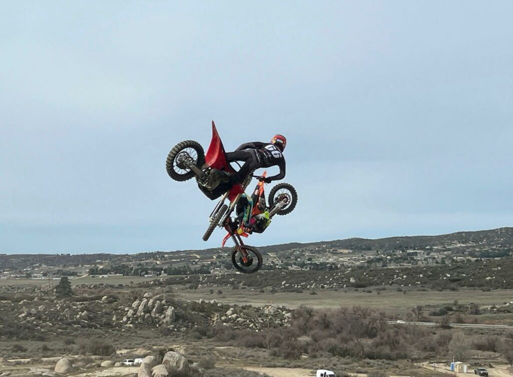 Rouler là-bas, c’était avant tout une expérience très forte en émotions. Beaucoup de plaisir, se lever tôt chaque matin pour aller rouler… c’était génial. J’avais aussi des programmes précis à suivre grâce à mon entraîneur Freddy Blanc, donc c’était un entraînement intense. Tout ça m’a fait gagner en vitesse, et découvrir de nouvelles textures de terrain m’a permis de me sentir encore mieux sur ma Stark Varg. J’ai également vécu quelque chose d’exceptionnel : un vrai rêve de gamin. Rouler avec Marvin Musquin et envoyer des whips ensemble… c’était complètement fou.
